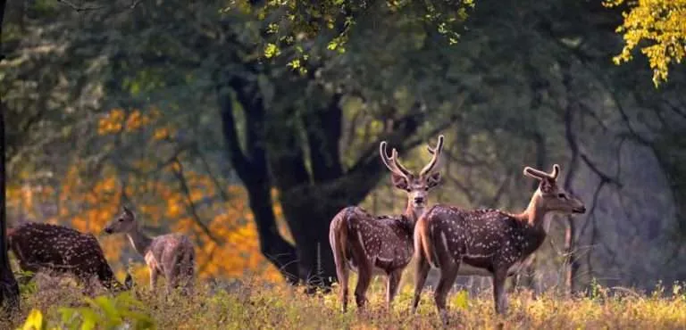 Wildlife: Apart from tigers, Kanha is the exclusive home of the rare Hard-ground Barasingha (Swamp Deer). You may also see leopards, sloth bears, wild dogs (dholes), gaur (Indian bison), and spotted deer.